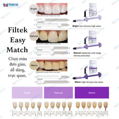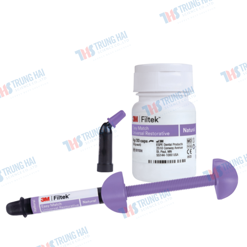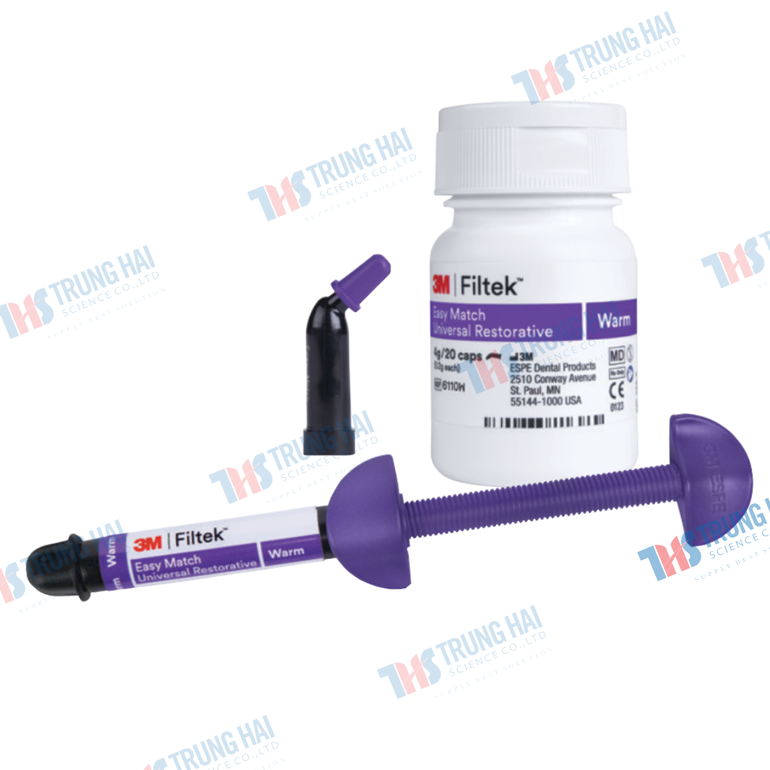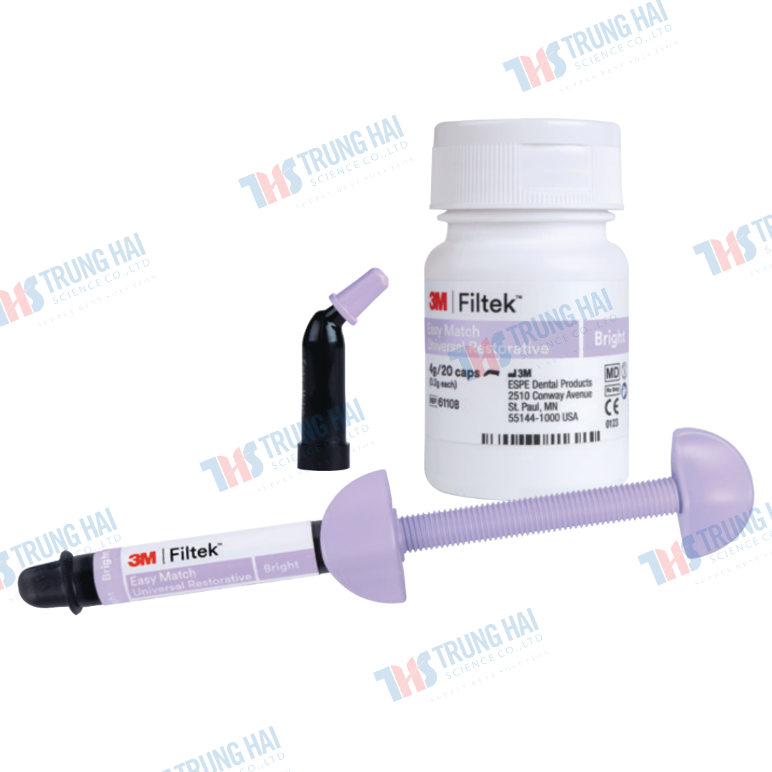 - Composite 3M Filtek Easy Match Universal Restorative (capsules) là vật liệu composite quang trùng hợp dạng nhộng, được thiết kế nhằm đơn giản hóa quy trình phục hồi răng trực tiếp mà vẫn đảm bảo hiệu quả thẩm mỹ tự nhiên và độ bền vượt trội.
