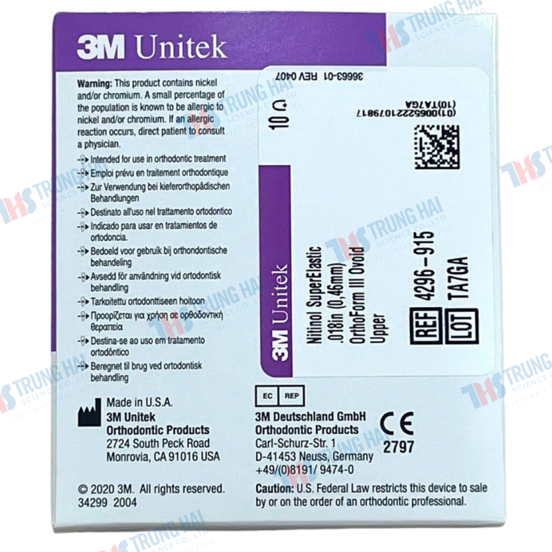 - Dây tròn 3M Unitek Nitinol Super-Elastic Archwire là dây cung siêu đàn hồi được thiết kế để dễ gắn vào rãnh mắc cài và giúp duy trì lực nhẹ, liên tục trong suốt quá trình điều trị.