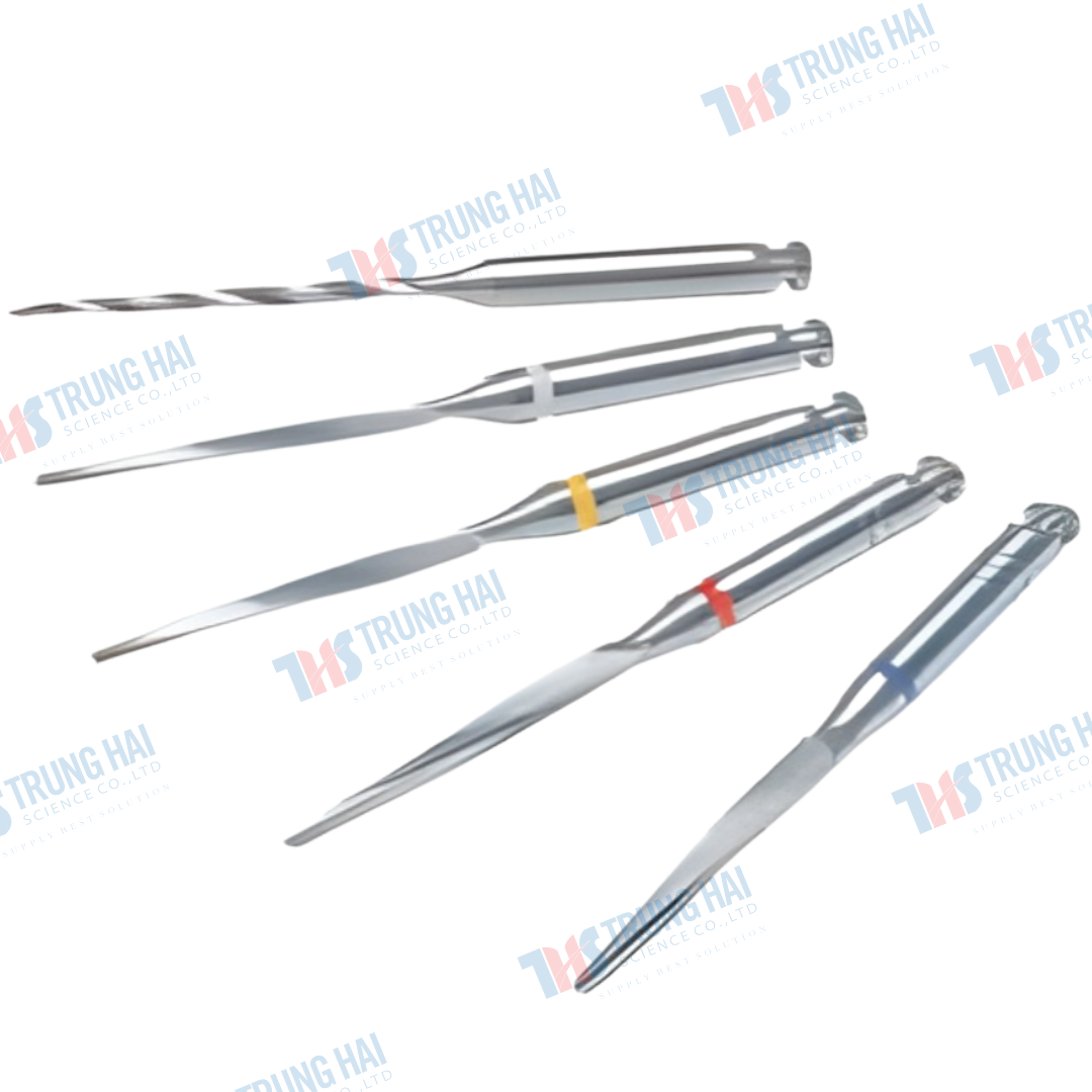 Có 05 kích thước, được mã hóa bằng màu sắc để đảm bảo tương thích chính xác giữa trụ và mũi khoan, giảm thiểu sai sót khi thao tác.