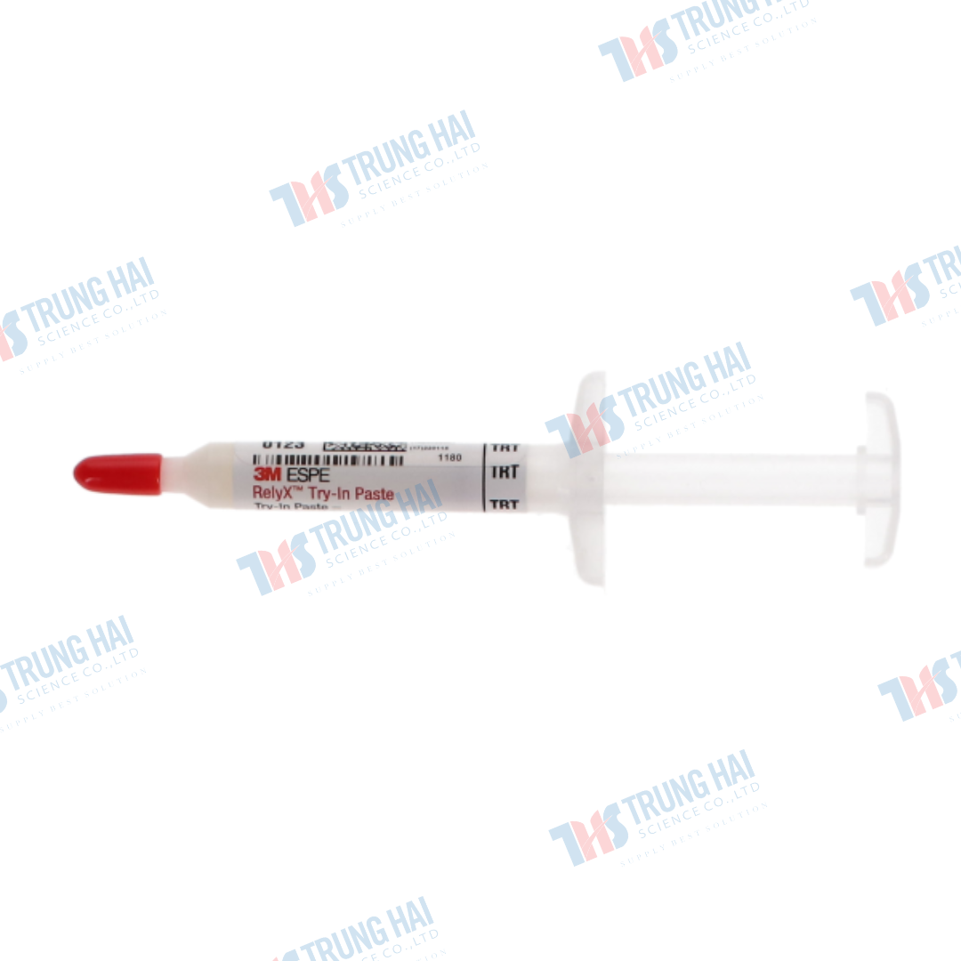 - Xi măng 3M gắn Veneer RelyX Try-In Pastes được sử dụng để hướng dẫn nha sĩ lựa chọn màu cho việc gắn sau cùng bằng xi măng RelyX Veneer và xi măng nhựa dán RelyX Utlimate. Các tông màu của hỗn hợp của Xi măng 3M gắn Veneer RelyX Try-In Pastes đặc biệt phù hợp với màu sau trùng hợp của xi măng RelyX Veneer và RelyX Utlimate. RelyX Try-In Pastes chứa nhựa polyethylene glycol, hạt độn zircon/silica và phẩm màu. RelyX Try-In Pastes dễ hòa tan trong nước để dễ làm sạch.