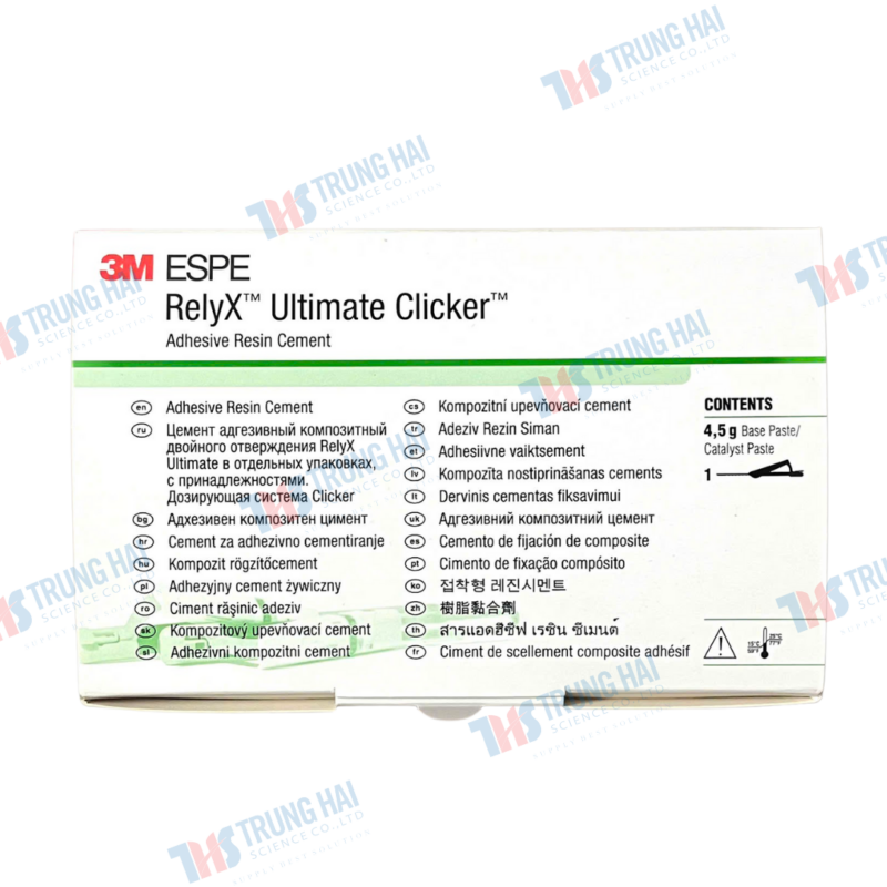 Xi măng dán sứ 3M Adhesive Resin RelyX Ultimate là xi măng resin dán được đóng trong ống đôi, giúp thao tác trộn và bơm vật liệu dễ dàng, đồng nhất. Khi sử dụng cùng keo dán Single Bond Universal, hệ thống này cho độ bền liên kết cao với cả men và ngà, với giá trị đo được hơn 30 MPa theo THE DENTAL ADVISOR. Ngoài ra, xi măng dán sứ 3M Adhesive Resin RelyX Ultimate có chứa thành phần kích hoạt cơ chế tự đóng rắn của keo dán, loại bỏ nhu cầu dùng thêm dual-cure activator riêng biệt.